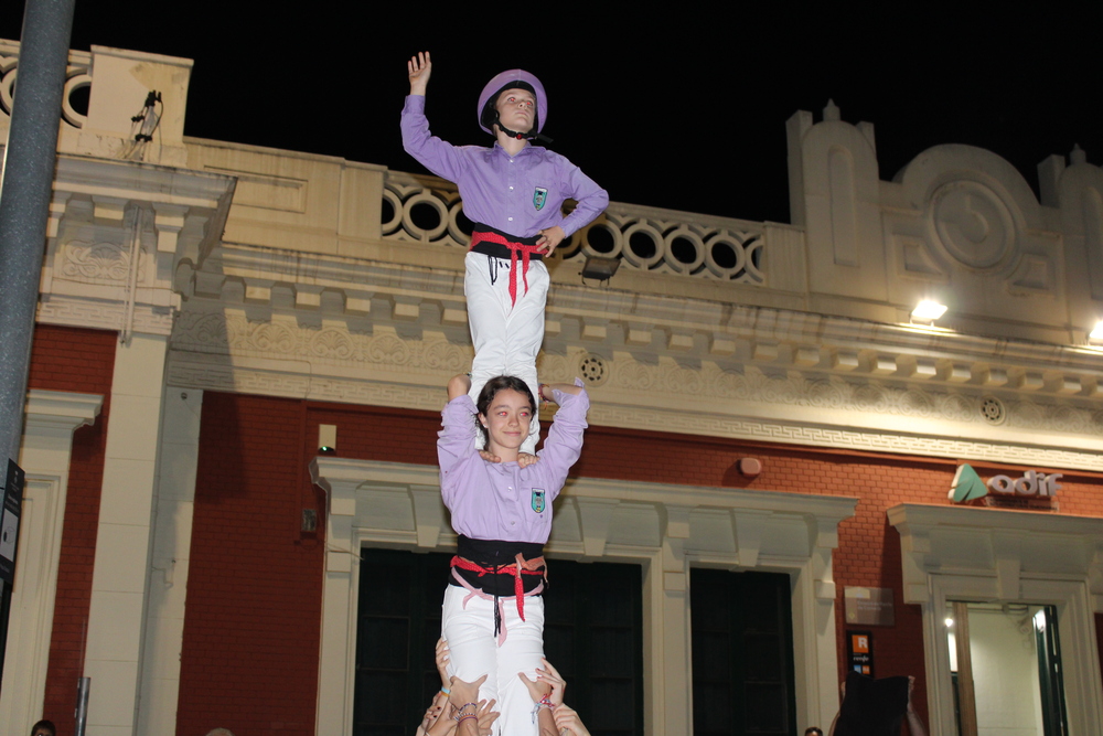Abans de Diada, però, tocava complir el tràmit de l’actuació de Vigília. Una actuació que des de fa ja unes quantes temporades realitzem en solitari i que acostumem a aprofitar per a rodar castellers al tronc amb castells de sis. Enguany hem fet 3 de 6, 5 de 6 i 4 de 6 amb el pilar. Destaquem també el pilar de 3 fet exclusivament per la canalla de la colla que va servir per tancar l’actuació.